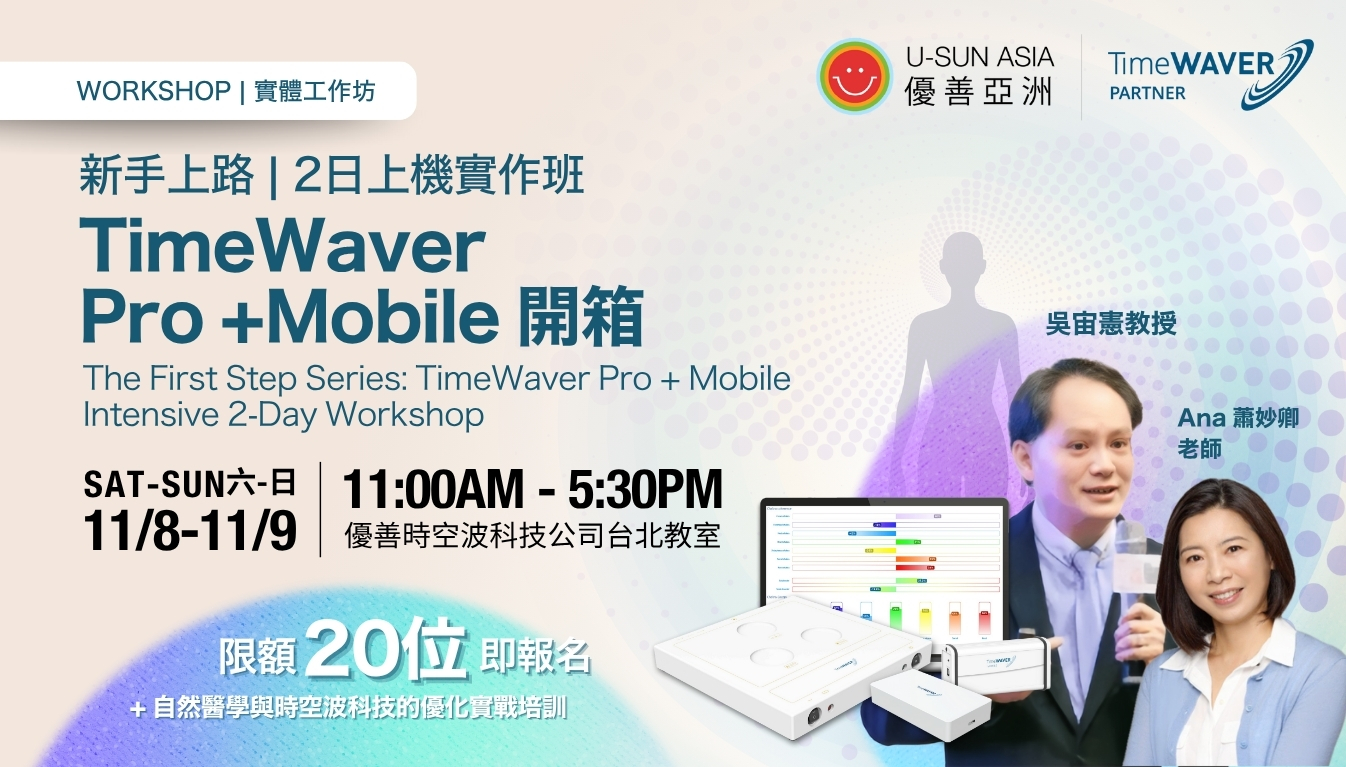 整合自然醫學與時空波科技的優化實戰培訓 您是否剛入手功能強大的 TimeWaver Pro,卻不知該從何開始? 今年,我們迎來了體積更小、速度更快、功能更強大的全新 MobileQuantum!在這款革命性新品的預約期間,我們特別榮幸地邀請到 TimeWaver 的資深倡導者——吳宙憲教授,與我們一同「開箱」,並親自傳授他多年來的實用技巧與最佳實踐心法。